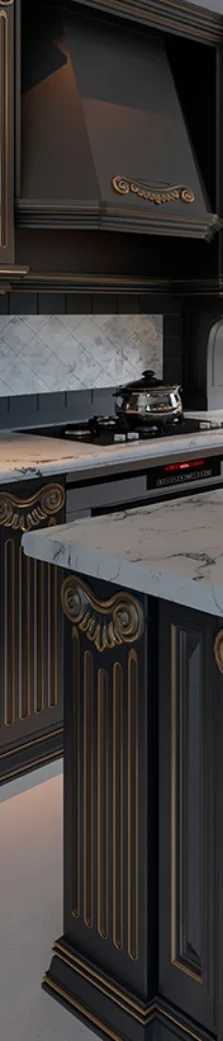 Les armoires dans les cuisines classiques sont souvent décoratives, avec des détails sculptés, des moulures, des panneaux de verre ou des éléments en fer forgé. Ces détails ajoutent une touche d’élégance à la pièce.